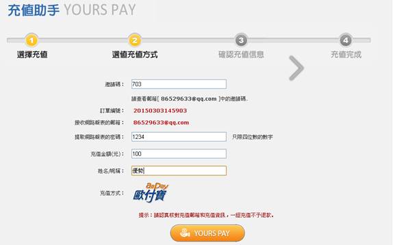 以上訊息填寫完成後,點選“YOURS PAY”按鈕。